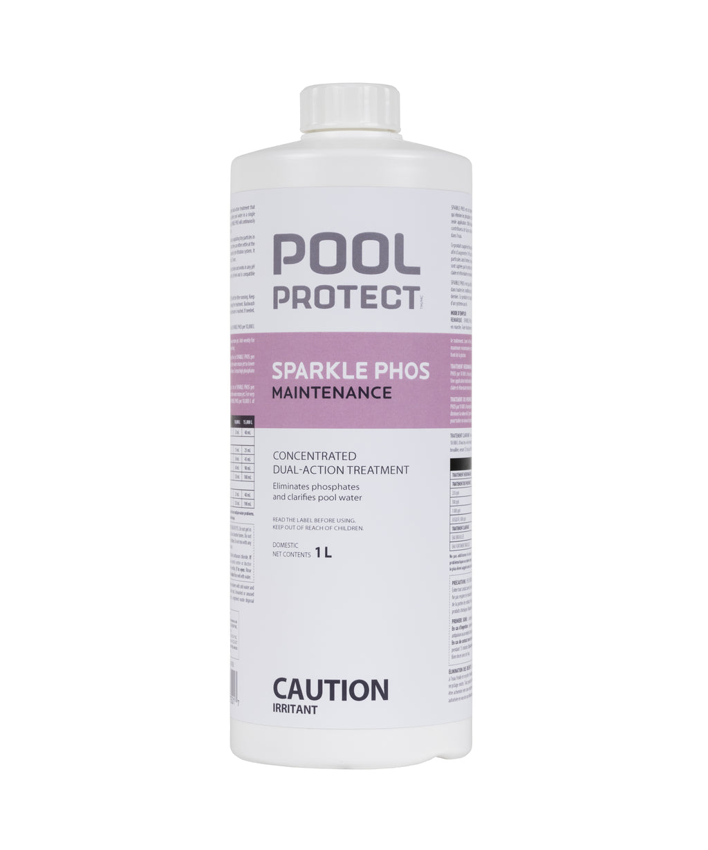 SPARKLE PHOS is a dual-action treatment that eliminates phosphates and clarifies pool water in a single application. When used weekly, SPARKLE PHOS will continuously eliminate phosphates and keep water crystal clear.