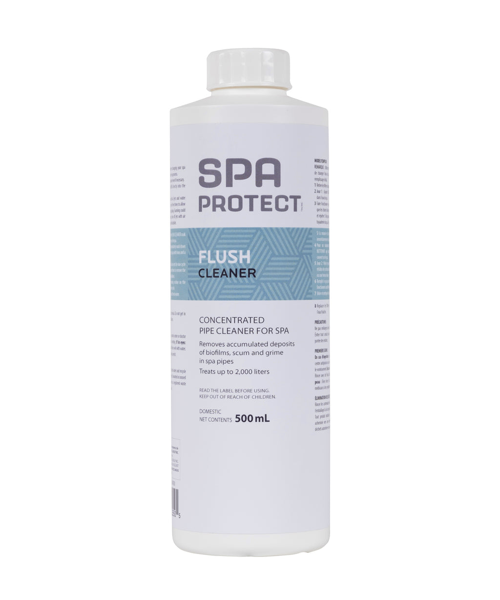 SPA FLUSH is a concentrated liquid cleaner that dislodges biofilms, dirt and residue in spa pipes.