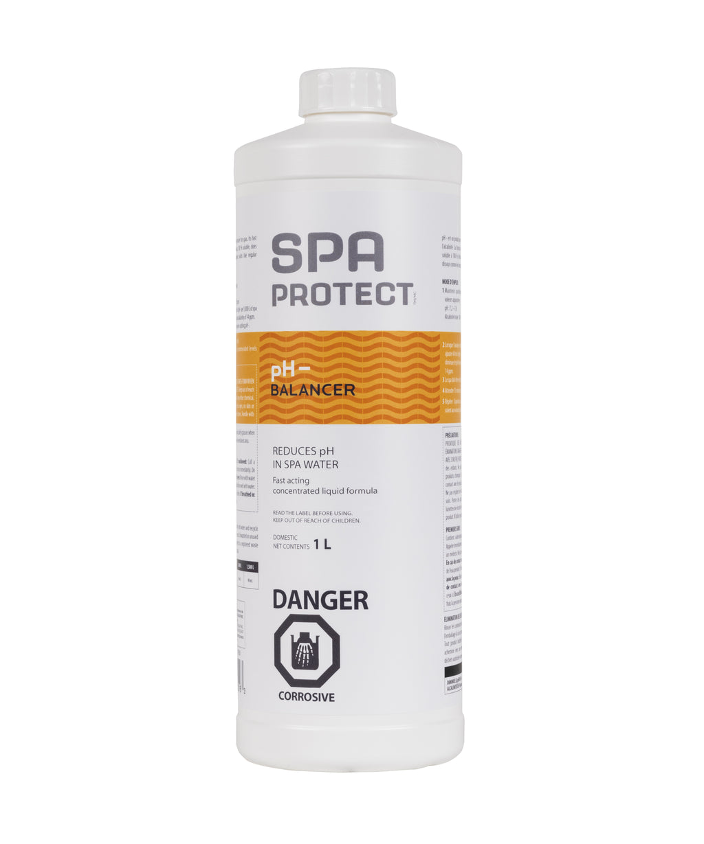 SPA pH – is a pH reducer. Its concentrated liquid formula is specifically designed for spas. The odourless liquid dissolves quickly in hot water for rapid results, with no residue to affect bather comfort.